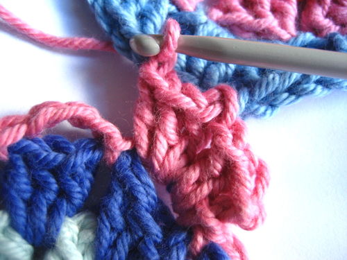 hexágono azulón para en el espacio de 3 cadenetas terminar la esquina haciendo otras