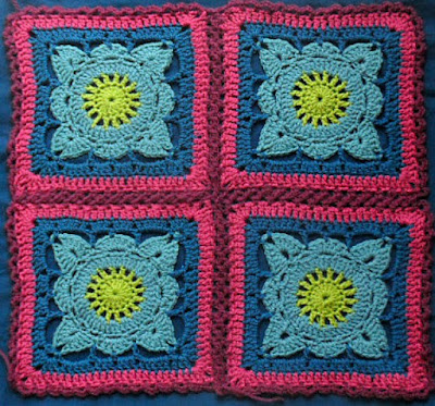 Y ya lo último para reciclar hilos, que ya nos estamos "despistando"...podéis hacer motivos pequeños para utilizar los restos de hilo y comprar un color para unirlos, la mejor forma?, la que aprendimos en el blog carinascraftblog.wardi.dk y que la encontraréis traducida en la entrada crochetingclub.blogspot: unir granny squares. Por qué es la mejor? (que no la más fácil...ya), porque se añaden dos vueltas en cada lado del granny, merece la pena y el resultado es fantástico. Si combináis además motivos grandes y este método, acabáis en un plis: